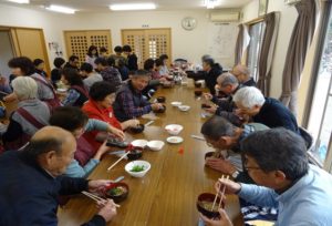 お待ちかねの会食。44人が「美味しい!」を重ねながら恒例行事を終えました